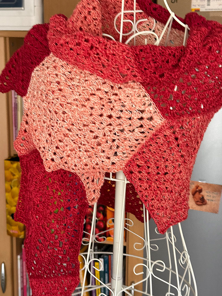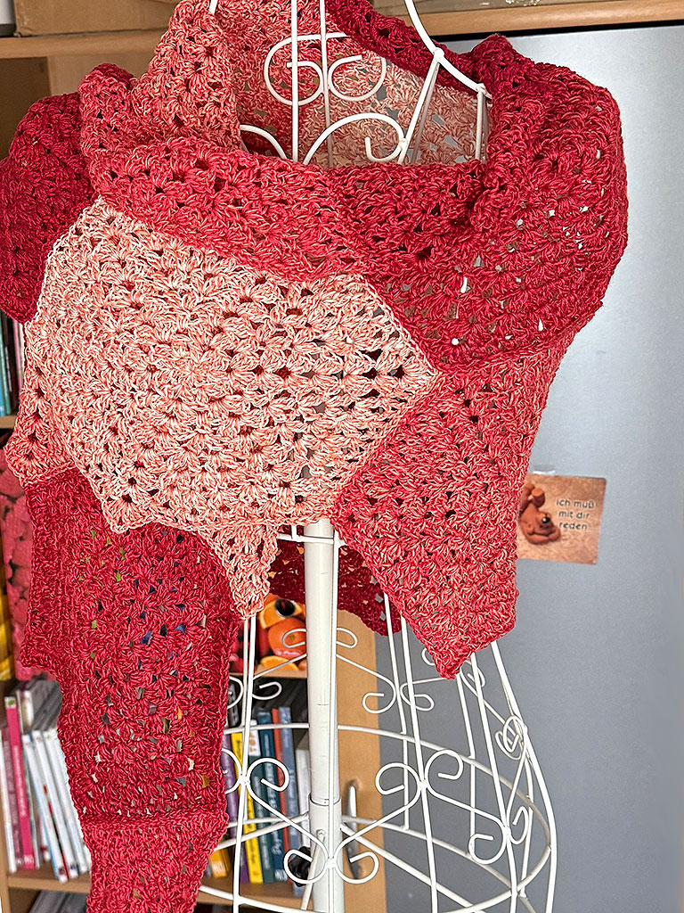 - Oder Alternativ kann das Tuch auch mit der PAINT SOCKS oder der YEAR SOCKS gehäkelt werden – hier benötigt man jeweils 200 g in Wunschfarbe.