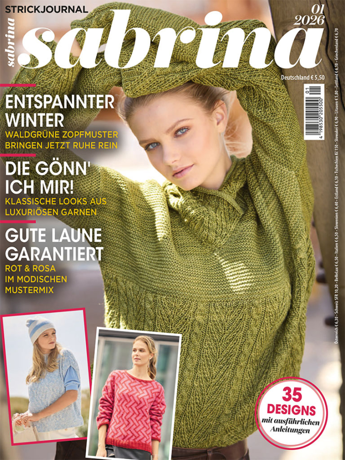 Da ist er wieder, der Endspurt in Richtung Jahresende. Meistens hektisch, gerne vollgepackt mit Terminen und Anforderungen – jetzt ist es besonders wichtig, ausreichend Pausen zu gönnen und Kraft zu tanken. Am besten beim Stricken! Die beruhigende Wirkung können wir mit den richtigen Strickmodellen sogar verdoppeln! Inspiriert vom Entspannungstrend „Waldbaden“ zeigen wir dir in dieser aktuellen Ausgabe Zopfmuster-Modelle in den satten Grüntönen, geerdet, robust und zugleich auch voller Kraft. Wer Stärke lieber aus einem Kontrast zieht, die werden unsere neuen Muster-Mix-Modelle lieben: die Powerfarben Rot und Rosa verstricken wir zu lebendigen Strick-Looks voller Fröhlichkeit. Für die, die einen Hauch von Luxus auf der Haut lieben: hier gönnen wir uns klassische, wunderbar kombinierbare Styles aus wohligen Garnen mit Kaschmir, Seide & Co. – mit Garantie zum Wohlfühlen! Wie immer werden alle unsere Strickmodelle in ausführlichen Anleitungen mit Text und allen relevanten Zeichnungen beschrieben. Alles klar für den Endspurt?